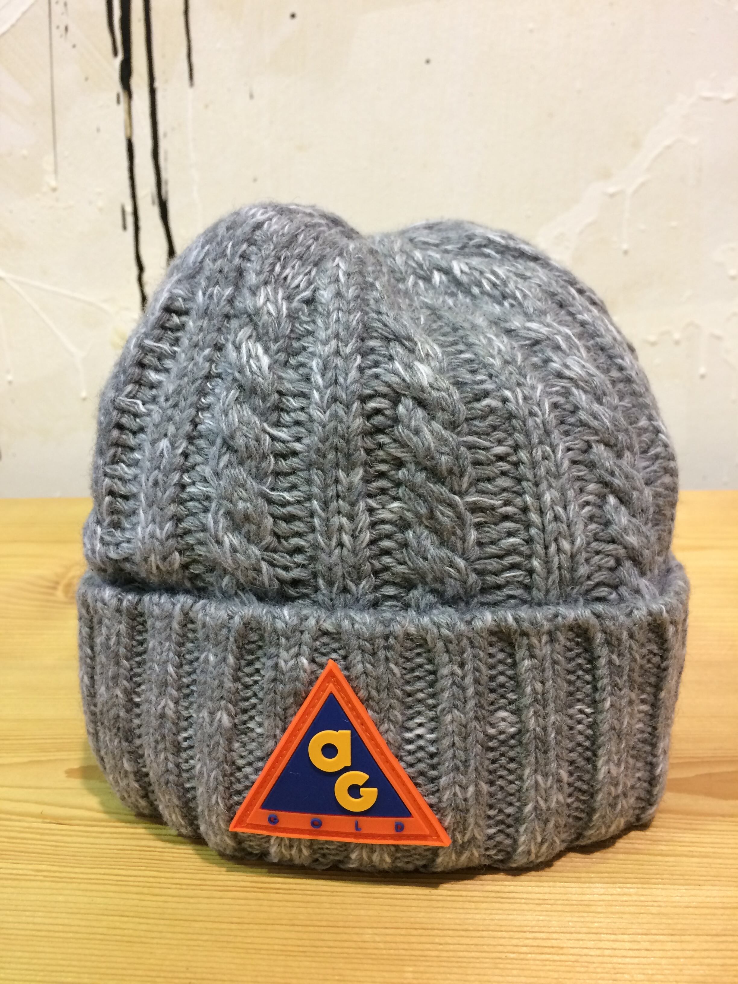 AG ALL CONDITIONS CABLE KNIT HAT WITH RUBBER PATCH